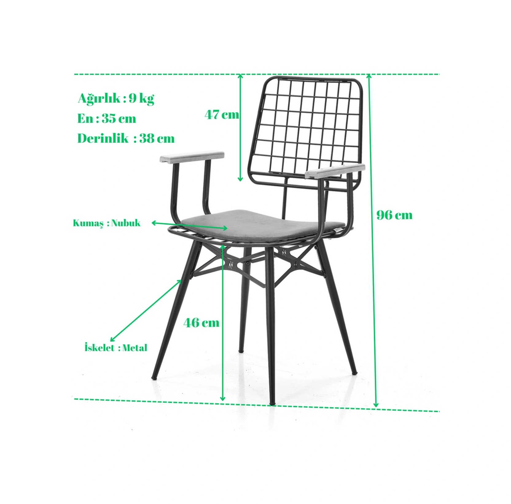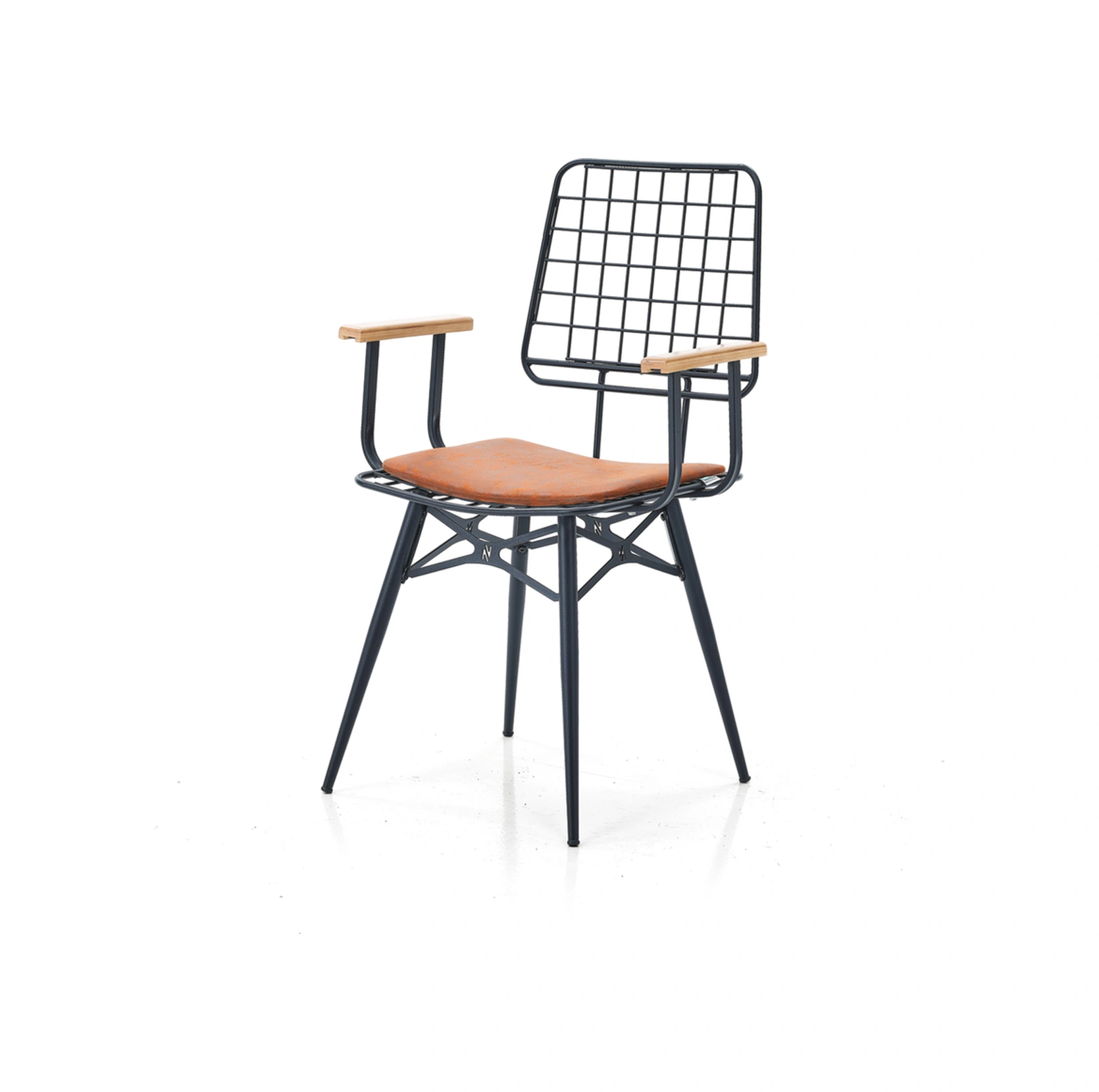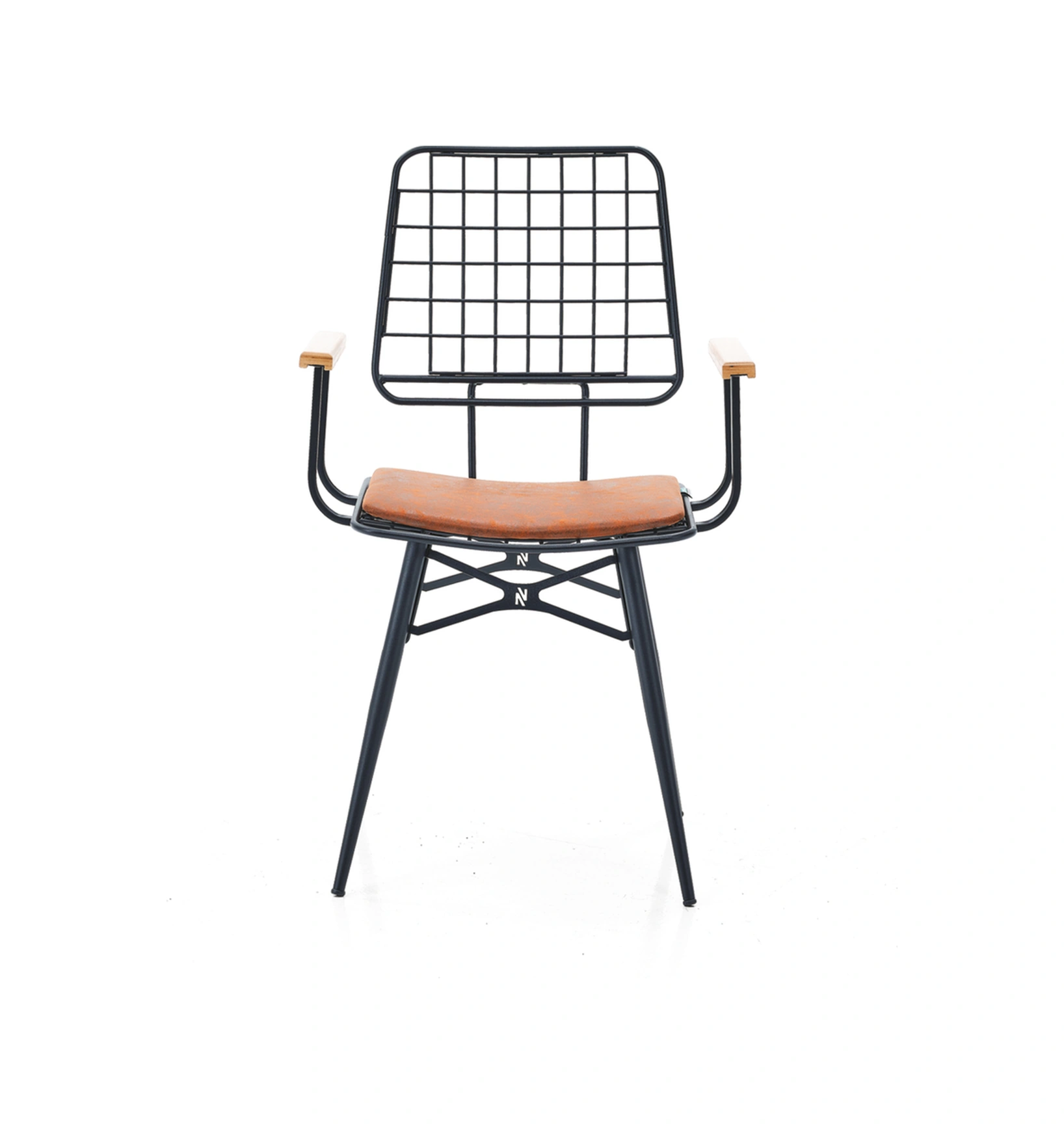 Dengema Rio S18 Kollu Sandalye Nubuk Taba, Metal Siyah Ayak Taba - Siyah Ayak