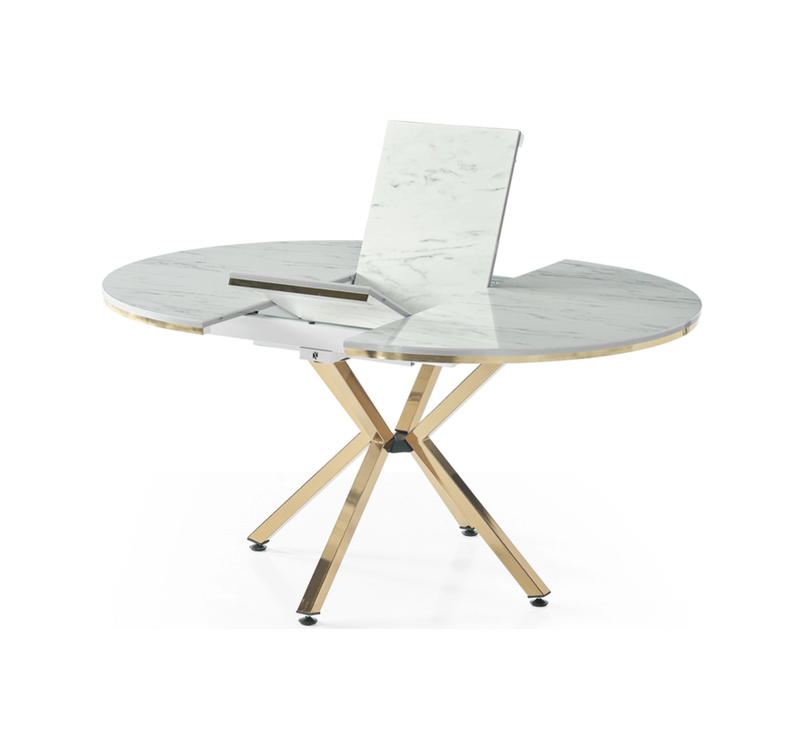 Dengema Zenit Plus Açılır Yuvarlak Masa Sandalyesiz Beyaz Mermer, Gold Ayak, Ø100 134 Cm Beyaz Mermer - Gold Ayak