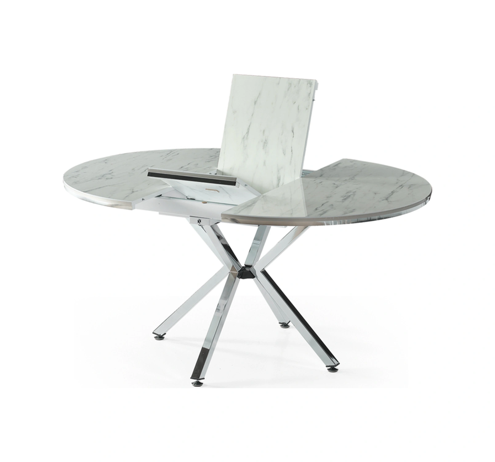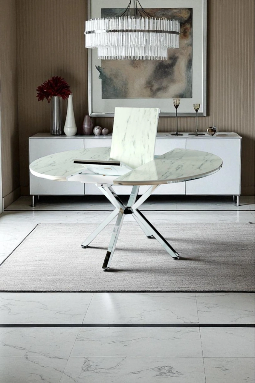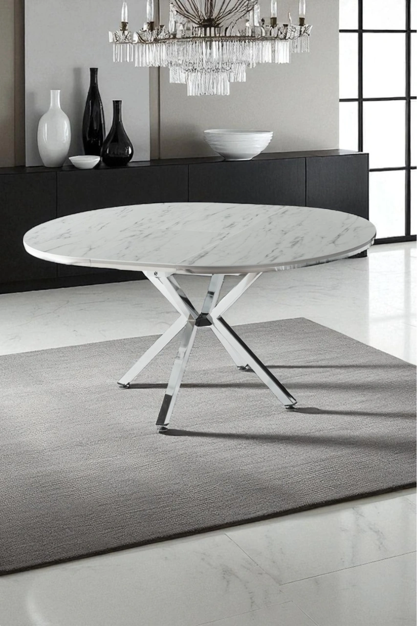 Dengema Zenit Plus Açılır Yuvarlak Masa Sandalyesiz Beyaz Mermer, Krom Ayak, Ø120 160 Cm Beyaz Mermer - Krom Ayak