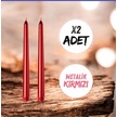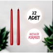Denic 2 li Metalik Kırmızı Şamdan Mum Konik Mum