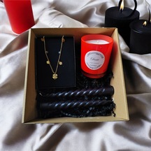 Denic Hediye Seti Kokulu Kırmızı Bardak Mum Yonca Kolye Burgulu Mum