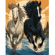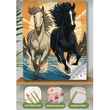Denic Sayılarla Boyama Seti 40x50 Cm (Çıtalı) Fırça Boya Dahil Numaralı Tuval Beyaz ve Siyah At