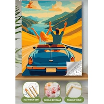 Denic Sayılarla Boyama Seti 40x50 Cm (Çıtalı) Fırça Boya Dahil Numaralı Tuval Mavi Arabalar Kız ve Erkek