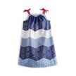 Denokids Lacivert Beyaz Desenli Poplin Kız Çocuk Elbise Renkli Çok Renkli