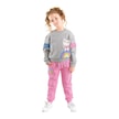 Denokids Rainbow Cat Kız Çocuk Alt-Üst Eşofman Takımı - Gri - Pembe