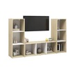 Deren Kitaplıklı Televizyon Sehpası Ünitesi Meşe Beyaz 150 Cm 9 Raflı Meşe - Beyaz