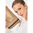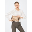 Deri Company Kadın Basic Clutch Çanta Düz Desenli Şeritli Logolu Altın Kahverengi (4006A-K) 214012 Altın