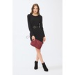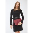Deri Company Kadın Basic Clutch Çanta Monogram Desenli Şeritli Logolu Bordo 214002 Bordo - Siyah