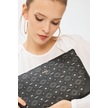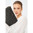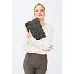 Deri Company Kadın Basic Clutch Çanta Monogram Desenli Siyah Gri 214002 Siyah - Siyah