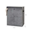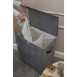 Deri Detaylı 2 Gözlü Çamaşır Sepeti, 53 X 33 X 60 Cm, 105 Litre Gri