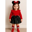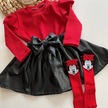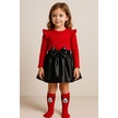 Deri Etek Badi, Diz Altı Çorap Takımı Kız Çocuk Takım Kırmızı