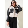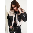 Deri Garnili Cepli Peluş Mont Siyah T1253 Siyah