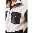 Kapüşonlu Düğmeli Peluş Mont - Kadın Beyaz