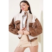 Deri Garnili Cepli Peluş Mont Taba T1253 Taba