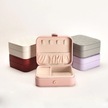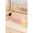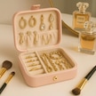 Deri Mini Baklava Desenli Seyahat Takı Bijuteri Mücevher Kutusu Organizer Düzenleyici 11,5cm Pembe İ