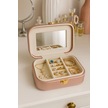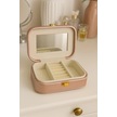 Deri Mini Seyahat Takı Bijuteri Mücevher Kutusu Organizer Düzenleyici 15cm Pembe İthal Ürün