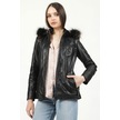 Dericlub Mistral Kadın Kapüşonlu Hakiki Deri Kaban Siyah Siyah