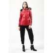 Dericlub Yb-2096 Kapşonlu Gerçek Deri Kadın Kaban Kırmızı