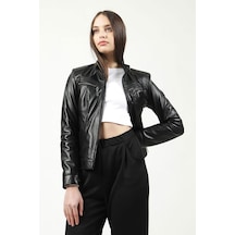 Derinss Dka2048 Hakiki Deri Kadın Siyah Mont