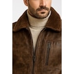 Derije Carlos Hakiki Deri Erkek Vintage Seyar Kürk Yaka Mont Kahverengi
