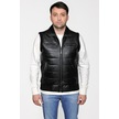 Derije Max Hakiki Deri Erkek Siyah Triko Detaylı Şişme Yelek