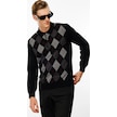 Desen Triko Erkek Polo Yaka Önü Baklava Desenli Yün Kazak 24513 Siyah Siyah