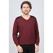 Desen Triko Erkek V Yaka Saf Yün Kazak 0246538 Bordo Bordo