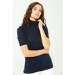 Desen Triko Kadın Likralı Kısa Kollu Tam Balıkçı Bluz 20346 Koyu