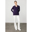 Desen Triko Kadın Polo Yaka Likralı Bluz 25091 K.mor K.mor
