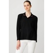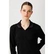 Desen Triko Kadın Polo Yaka Likralı Bluz 25091 Siyah Siyah