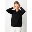 Desen Triko Kadın Polo Yaka Nakış İşlemeli Ligralı Bluz 25092 Siyah Siyah