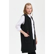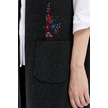 Desen Triko Kadın Polo Yaka Önü Açık İşlemeli Uzun Yün Yelek 24002 Siyah Siyah