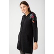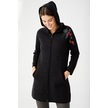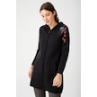 Desen Triko Kadın Reglan Kol Nakış İşlemeli Kapüşonlu Uzun Kaban