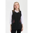 Desen Triko Kadın Sıfır Yaka Cep Üstü İşlemeli Kısa Yün Yelek 24000 Siyah Siyah