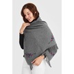 Desen Triko Kadın Triko Kenarı Çiçekli Yün Şal 23224 Füme