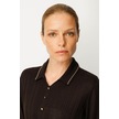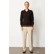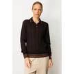 Desen Triko Polo Yaka Simli Çizgili Kadın Yün Bluz 25080d Kahve