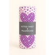 Desenli 120lik Mor Kalp Lastikli Çarşaf Ve Yastık Kılıfı Pembe