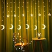 Desenli Ay Yıldız Saçak Perde Led Işık, 8 Animasyonlu, 3 Metre Saçaklı Led Perde Işık