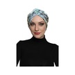 Desenli Çapraz Penye Krem-yeşil Yaprak Desenli Hazır Türban Tesettür Havuz Bonesi Krem - Yeşil