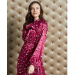 Desenli Kadın Saten Elbise - Bağlamalı Yaka Detaylı - Modern Ve Şık Tasarım - Özel Davet Ve Günlük Kullanım İçin Elbise Mor