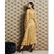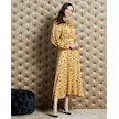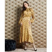 Desenli Kadın Saten Elbise - Bağlamalı Yaka Detaylı - Modern Ve Şık Tasarım - Özel Davet Ve Günlük Kullanım İçin Elbise Safran