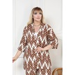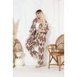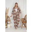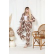Desenli Kimono Hırkalı 2li Alt Üst Takım Bürümcük Kumaş Yazlık 2xl-6xl Oversize Kahverengi