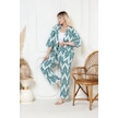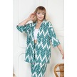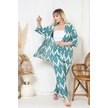 Desenli Kimono Hırkalı 2li Alt Üst Takım Bürümcük Kumaş Yazlık 2xl-6xl Oversize Yeşil