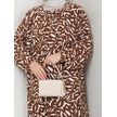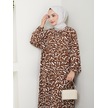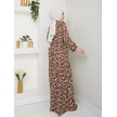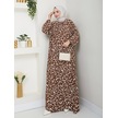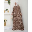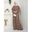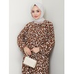 Desenli Önü Büzgülü Viskon Elbise - Taba / E0131 Taba