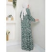 Desenli Önü Büzgülü Viskon Elbise - Yeşil / E0131 Yeşil