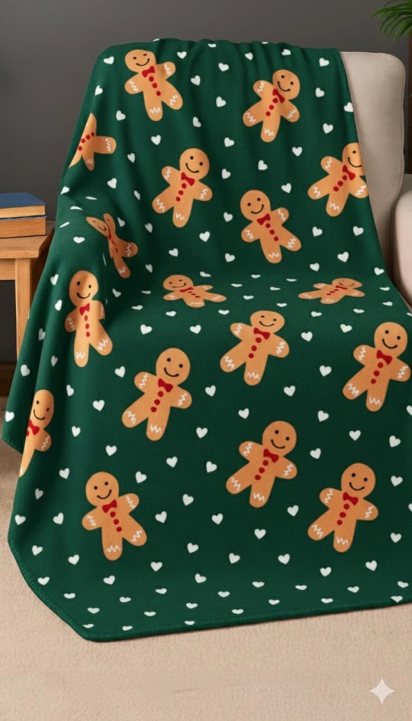 Desenli Polar Battaniye Çift Kişilik 195x215 Cm Yeşil