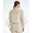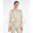 Desenli Transparan Kadın Bluz - Fiyonk Detaylı - Balon Kollu - Modern Ve Şık Tasarım - Özel Gün Ve Davet İçin Bluz Pudra
