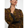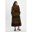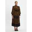 Desenli Ve Piliseli Elbise - Fırfır Detaylı, Şifon Ve Kemer Tasarımıyla Zamansız Şıklık Kahve
