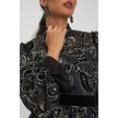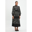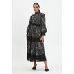 Desenli Ve Piliseli Elbise - Fırfır Detaylı, Şifon Ve Kemer Tasarımıyla Zamansız Şıklık Siyah