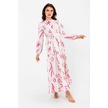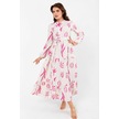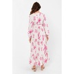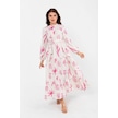 Desenli Yazlık Baharlık Keten Elbise 2103 Pembe